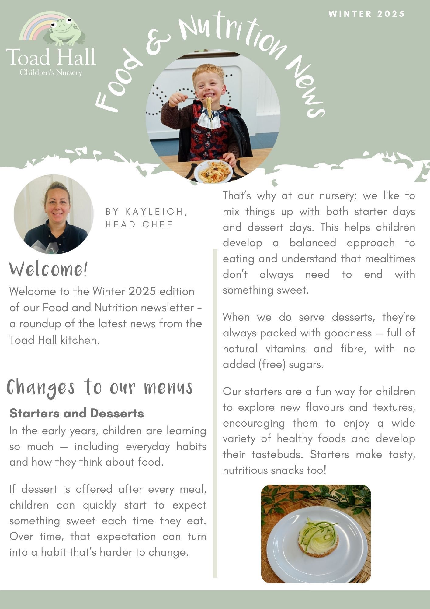 Welcome to the Winter 2025 edition of our Food and Nutrition newsletter, a roundup of the latest news from the Toad Hall kitchen.